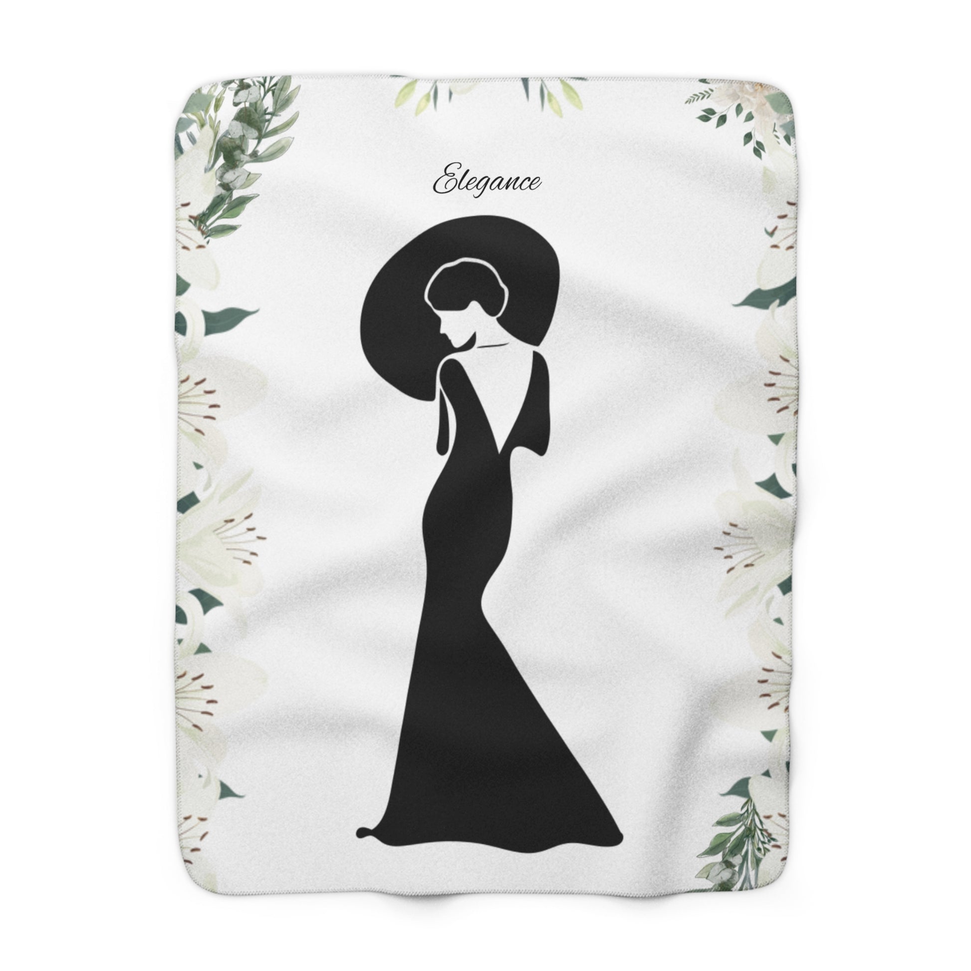 A beautiful blanket with a white background, Elegant lady graphic, flowers, and "Elegance" written on it. Unbelievably fluffy and warm, this high-quality cozy fleece blanket is impossible to leave behind wherever one might go. Perfect for movie nights, sleepovers, gifts, snuggling on the couch, or at outdoor events. This Elegant and cozy blanket is just the extra touch you need to enhance your classy and elegant side to make your life more Aesthetic.