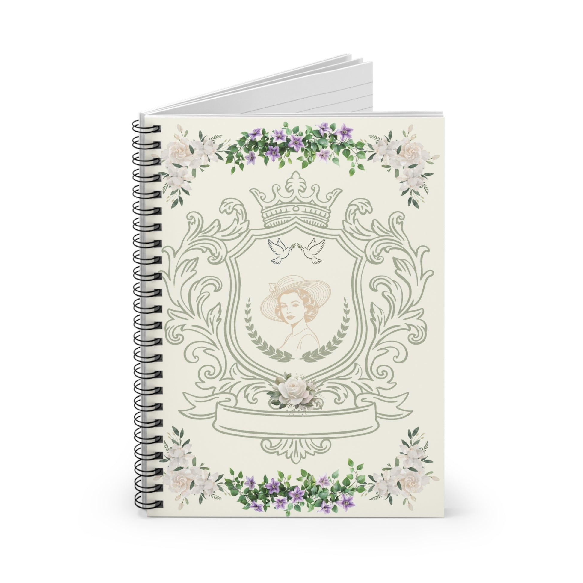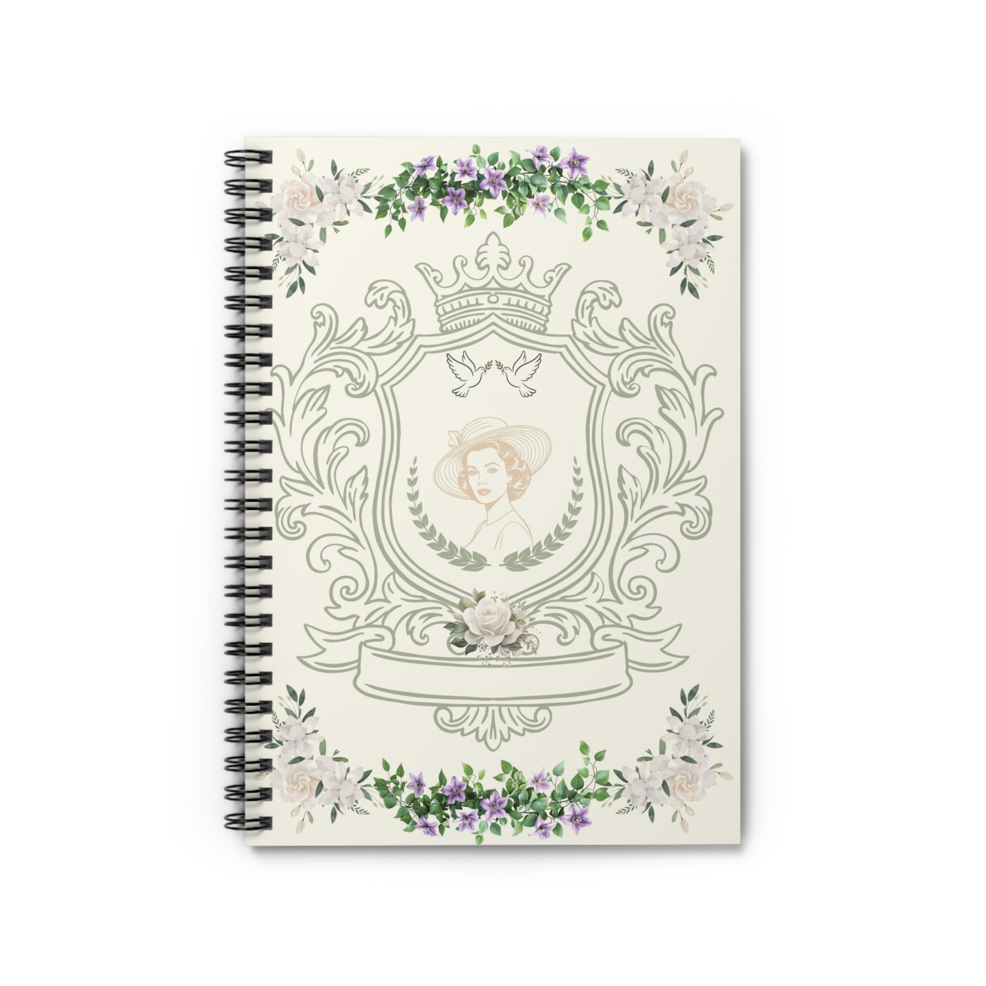 Elegant and Noble-inspired, the Floral Heritage Notebook celebrates timeless beauty and feminine legacy. Featuring a classic portrait framed with florals, doves, and ornate details, this design evokes tradition, refinement, and quiet strength. Ideal for journaling, writing, or thoughtful planning, Floral Heritage feels meaningful and enduring. Created for those who appreciate heritage, Royal aesthetics, floral artistry, and lasting beauty. The Floral Heritage notebook reflects a love for old-world elegance blended with gentle femininity.