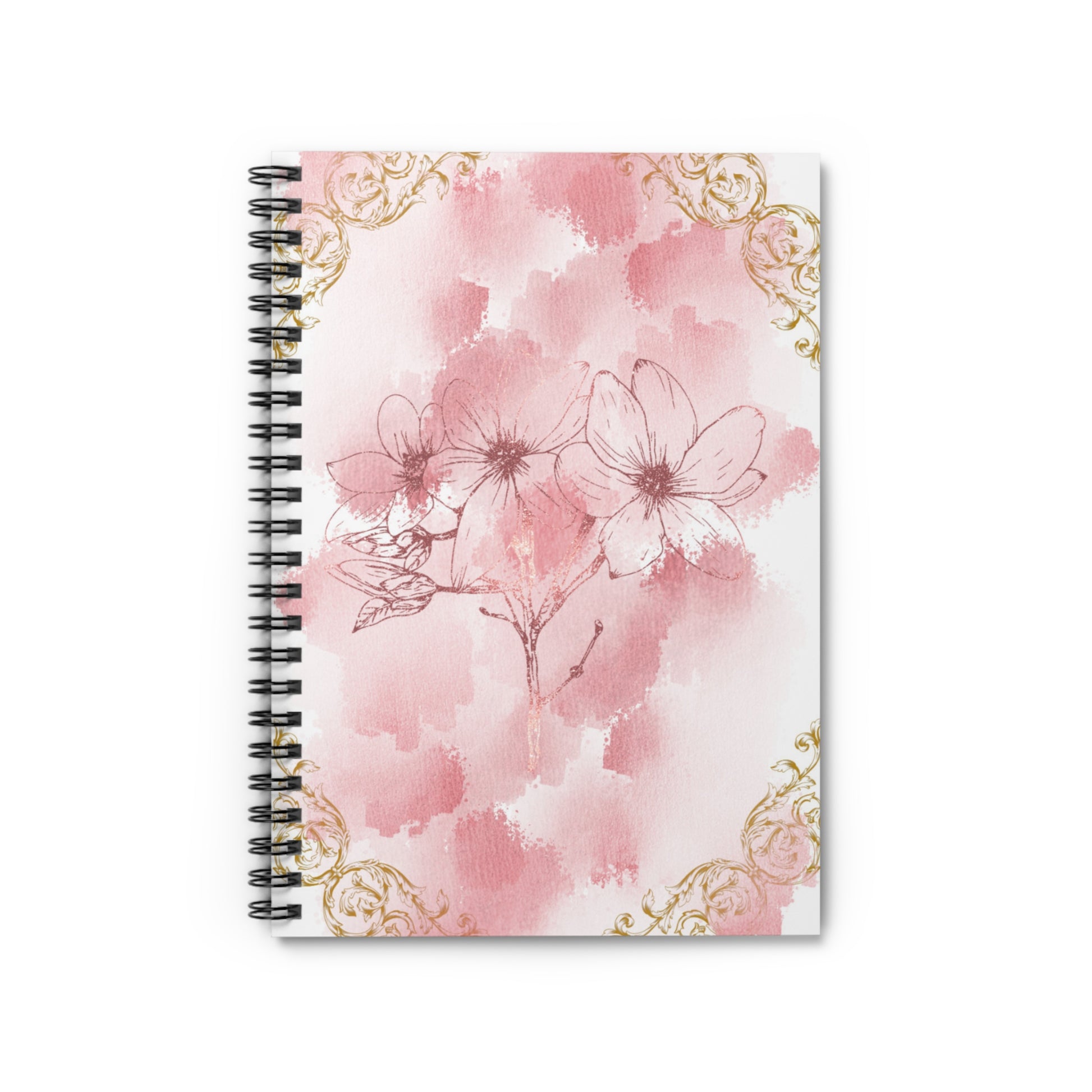 A unique Aesthetic pink notebook with gold trims and a flower design on it. Perfect for those who love to jot down their thoughts in style. Ideal for students, writers, and anyone who appreciates a beautiful notebook. Great for back to school, birthdays, and gifts.